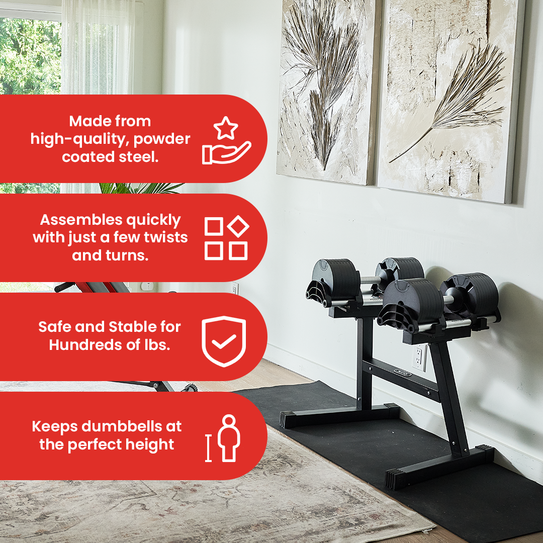 - Sturdy NuoBell Adjustable Dumbbell Stand - Perfect for NuoBell adjustable dumbbells. Weight rack for dumbbells in the home or office. Make workouts safer and keep your workout area organized.