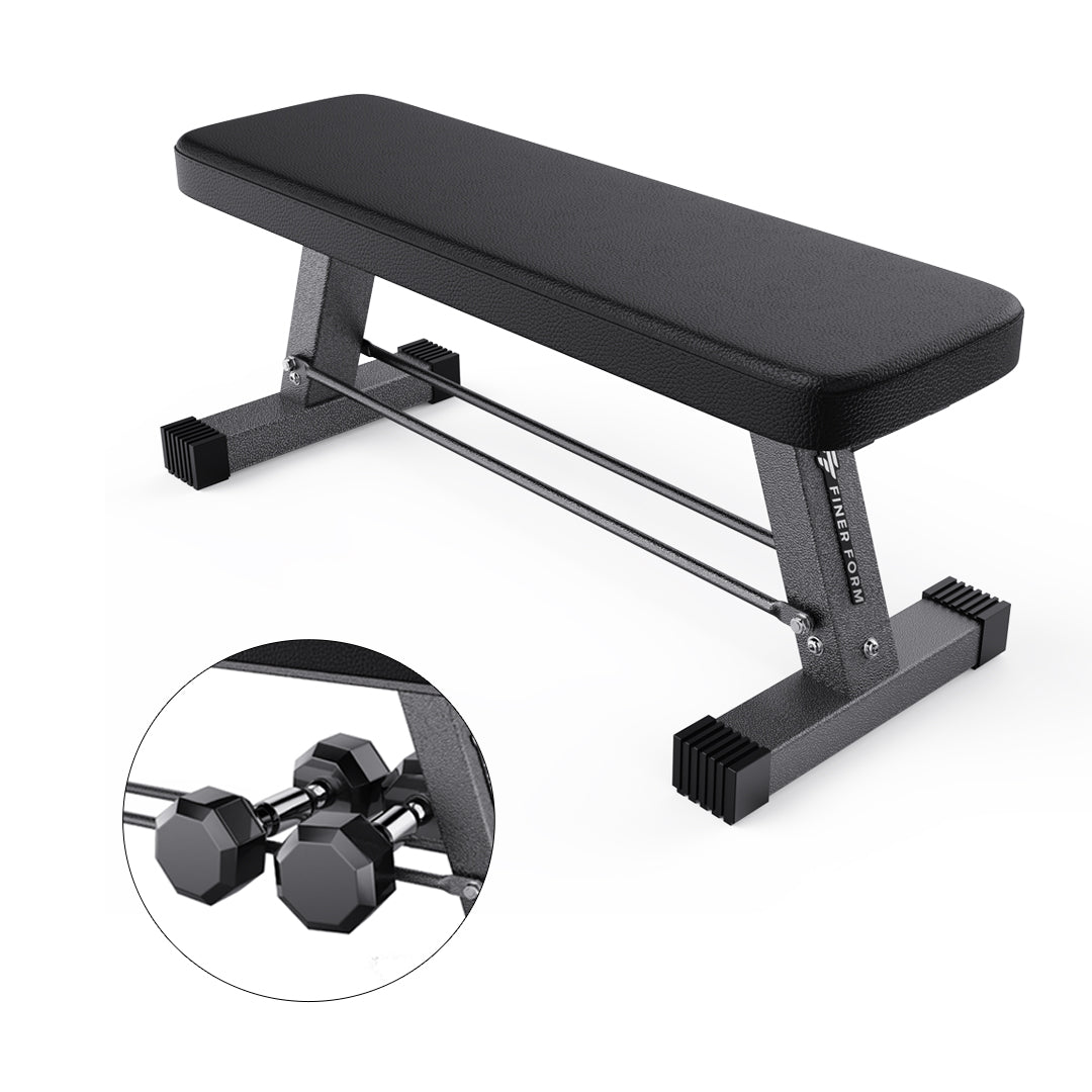 Upgrade your home gym with this heavy-duty flat weight bench, designed for a wide range of strength training and full-body workouts. Whether you're training with traditional weights, a barbell weight set, or small dumbbells, this durable workout bench is the perfect foundation for your home exercise equipment setup.