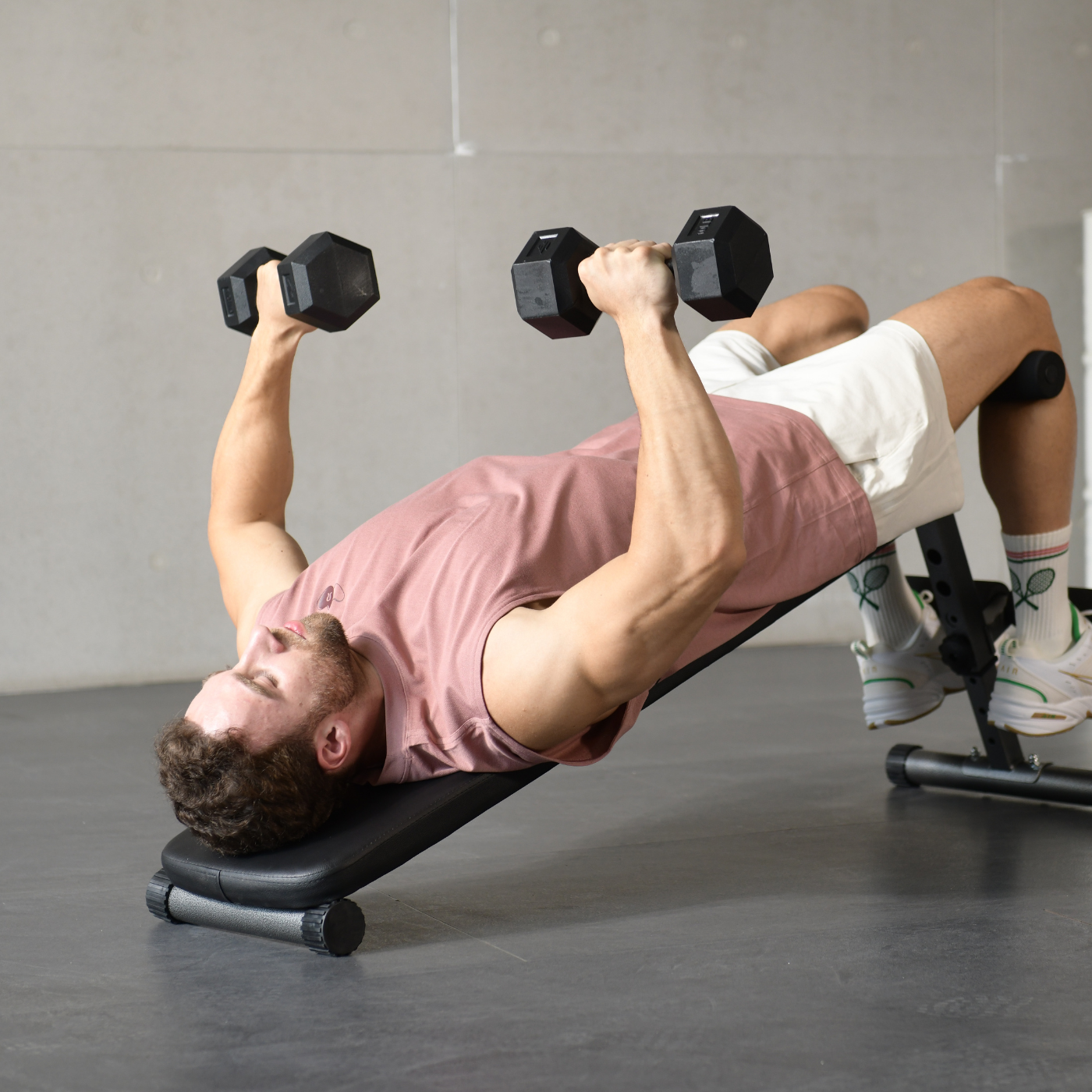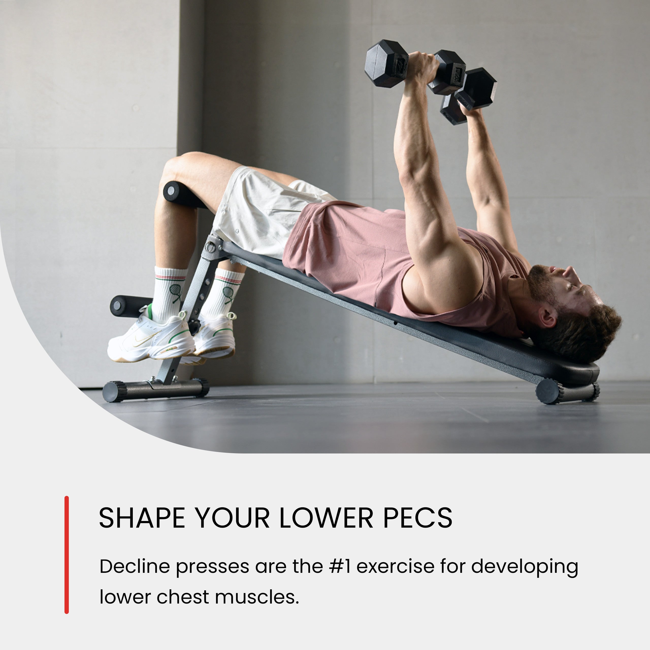 Easily switch between decline angles to target abs, lower chest, and total upper-body strength, all on one versatile sit-up bench.
