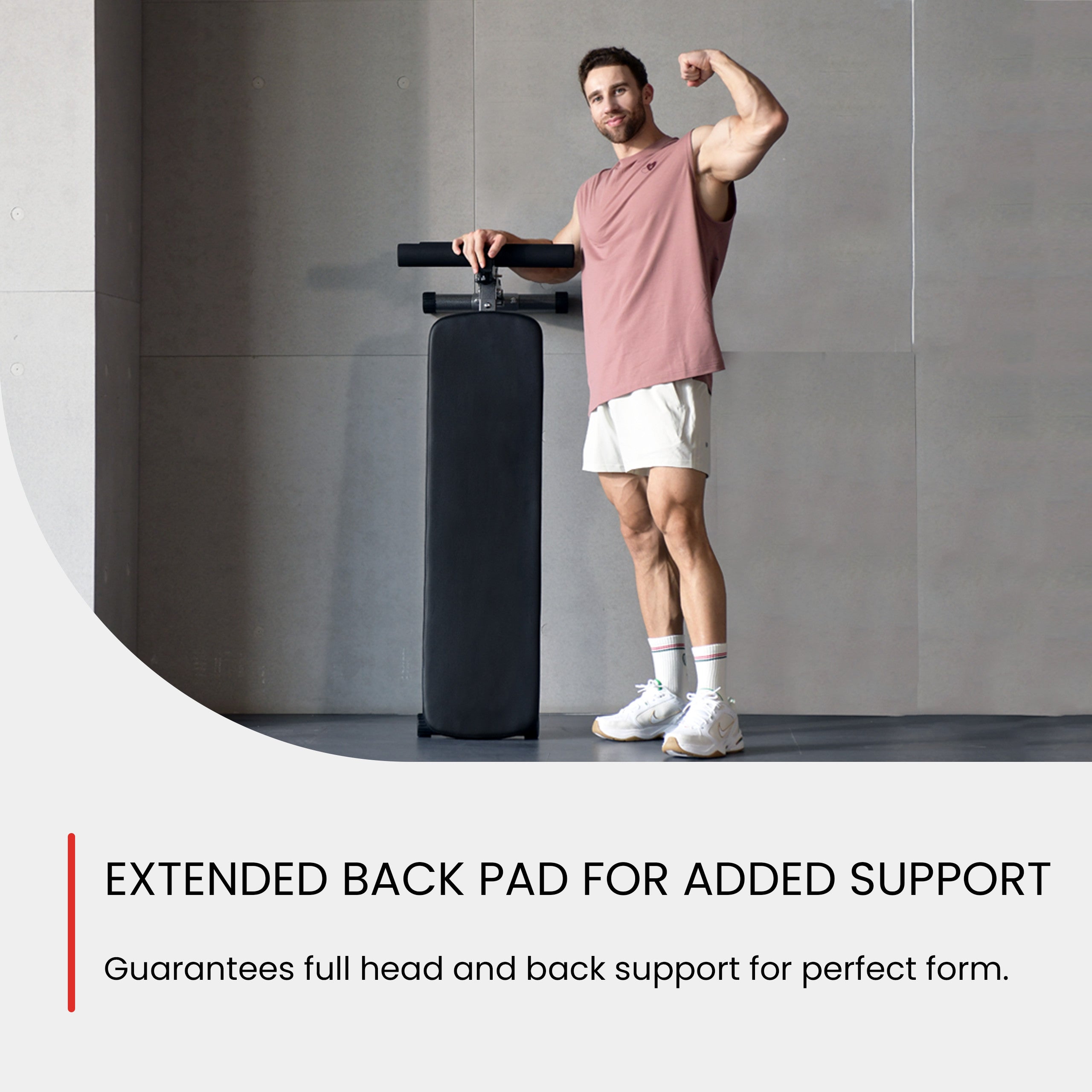 Designed with an extended, high-density backrest that fully supports users up to 6'2", giving you real room to move during sit-ups and decline presses.