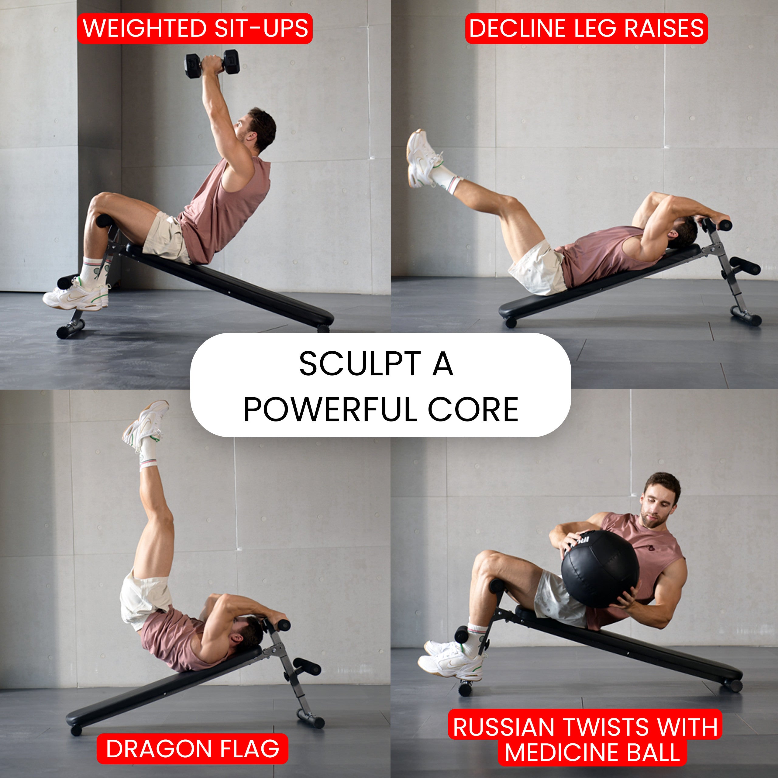 Extra-long support, 660 lb stability, and adjustable decline angles for serious core and upper-body training at home.